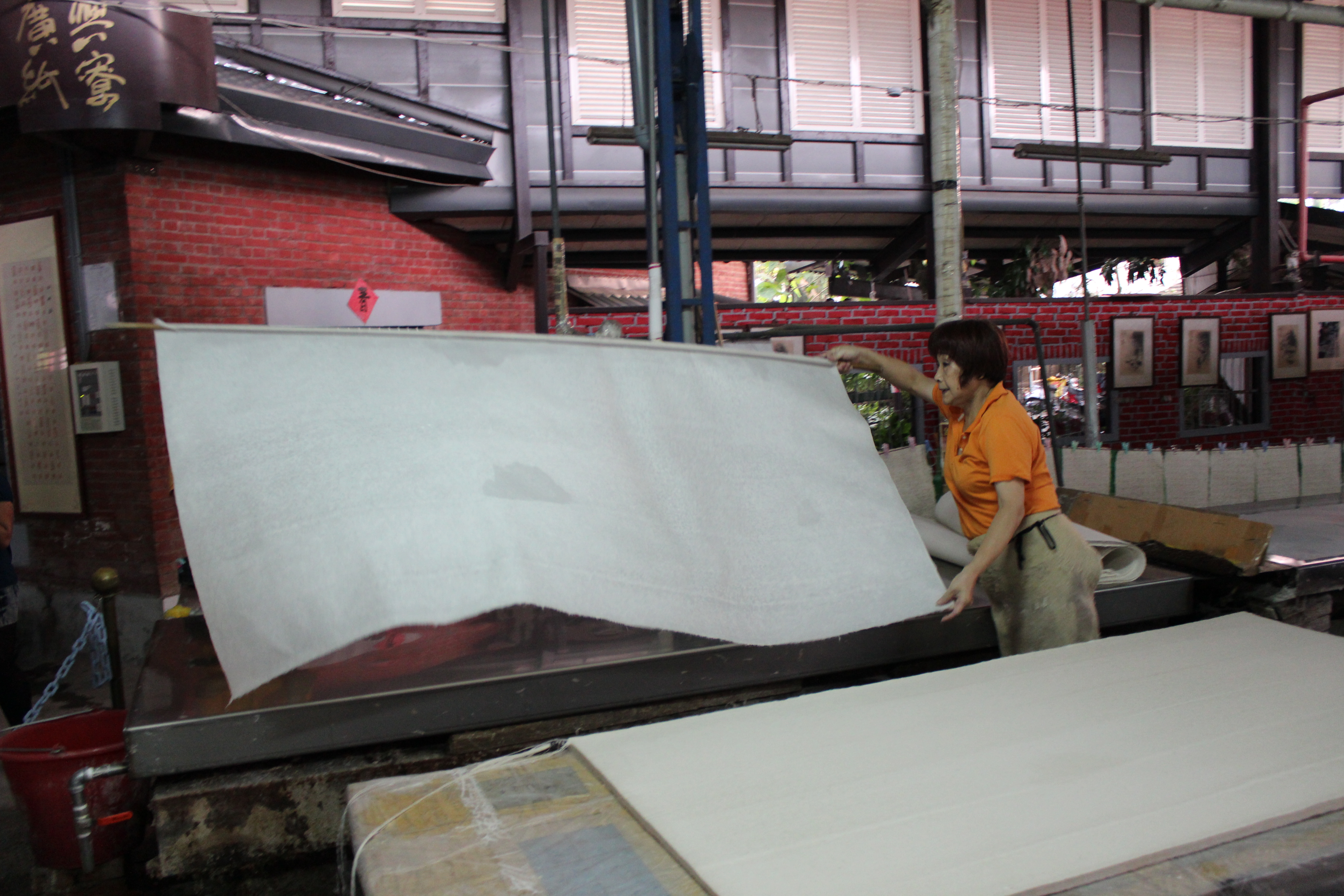 Drying paper at Guangsing Handmade Paper Mill