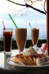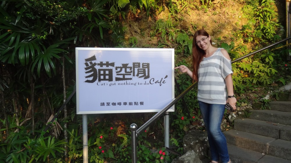 Nach der Pause machten wir auf den Rückweg zum Ort an der Gondelstation. Dort hatten wir einige Cafes mit schönem Ausblick auf Taipei gesehen. Im Café mit dem tollen Namen “Cat’s got nothing to do” machten wir es uns gemütlich (soweit das in Gesellschaft von vielen Mücken geht) und warteten den Sonnenuntergang ab.