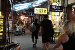 (auf dem mittleren der kleinen Bilder sieht man uns auf dem Weg zum Gebäude mit unserem Zimmer. Wir folgen einem Typen der unsere Bettsachen in einem Sack trägt zum Hintereingang des “Hotels” in dem unser Zimmer liegt.)