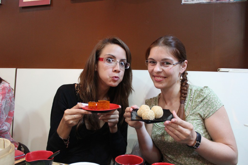 One of the highlights of our trip to Hong Kong was the yummy food at Tim Ho Wan Dim Sum restaurant. This restaurant is very famous as it was rated with Michelin Star AND it is really cheap. If it had been really expensive I maybe wouldn’t recommend it so highly, but with this price you just have to give it a try! The only thing to consider: Long waiting time! We queued outside of the restaurant for maybe an hour or something. It is a very small place with not many seats. (On the picture above you can see us with 2 of the 3 deserts the restaurant offers.)