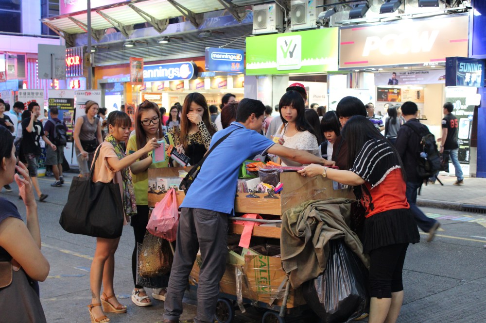 The very touristic ladies market in Hong Kong offers many souvenirs. I guess the quality is not very high though. The shopping is made very difficult by the fact that one has to bargain the price. It seems to be normal to get around 50% of the original price. I constantly felt that I had paid too much. But when I asked for a cheap price the seller got angry and walked away from me ^^ I had bought very pretty hair accessories… but unfortunately I have already broken one of them 😦