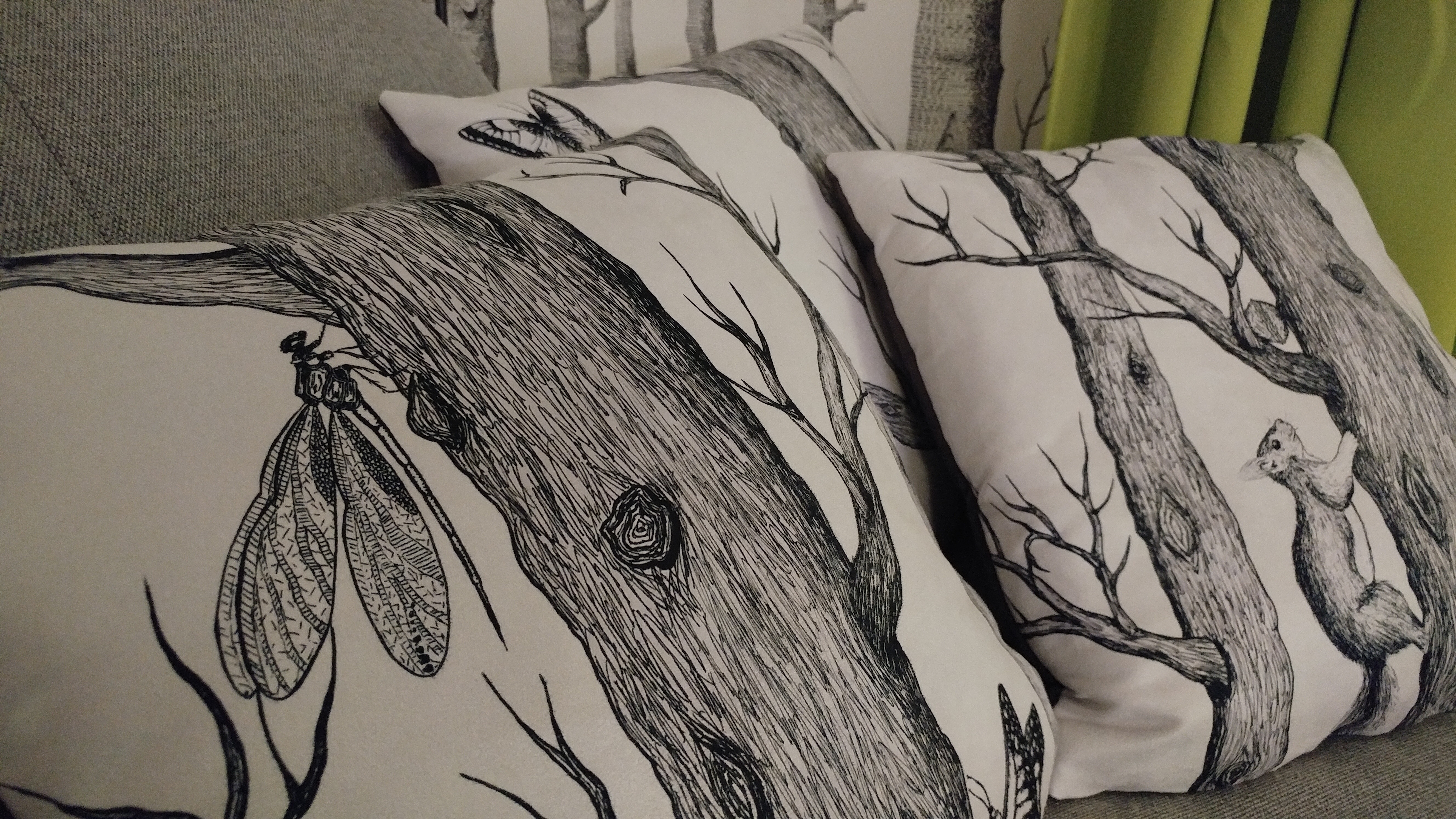 And the thing with the sofa cushions: I took part in a competition for artists. One has to hand in three designs for sofa cushions and the best one will be sold at Wraptious.com. The contest entries are also available to buy, but only until November 16, 2016. Artists get points with Facebook likes and cushion sales. So have a look and if you like my cushions I would appreciate if you could like, share and maybe even buy them!